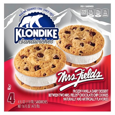 Klondike Ice Cream Mrs Fields Cookie Sandwich 4pk Target